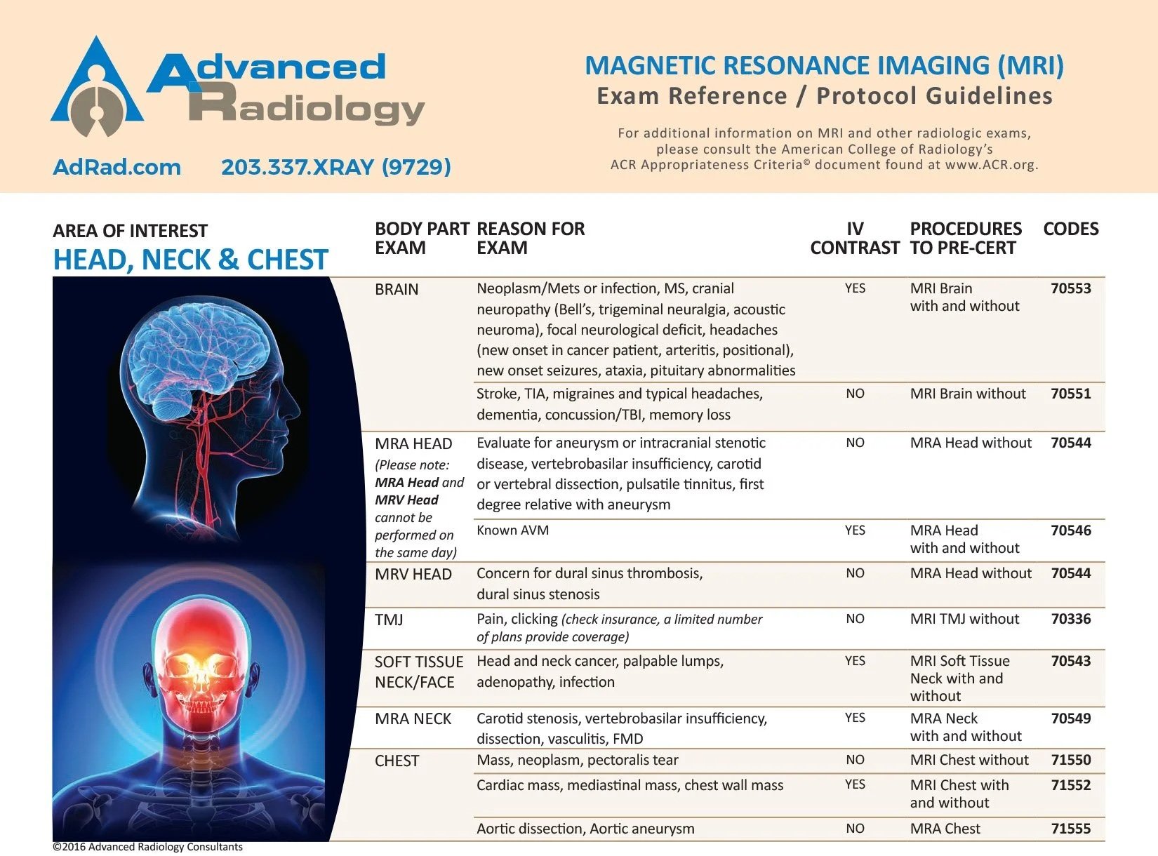 The result was both a valuable informational reference and a key promotional tool. These guides provide referring physicians with a quick reference for choosing the most appropriate Current Procedural Terminology (CPT) code when writing prescriptions for medical imaging, and at the same time allow Advanced Radiology to remain top-of-mind among their referring physicians.