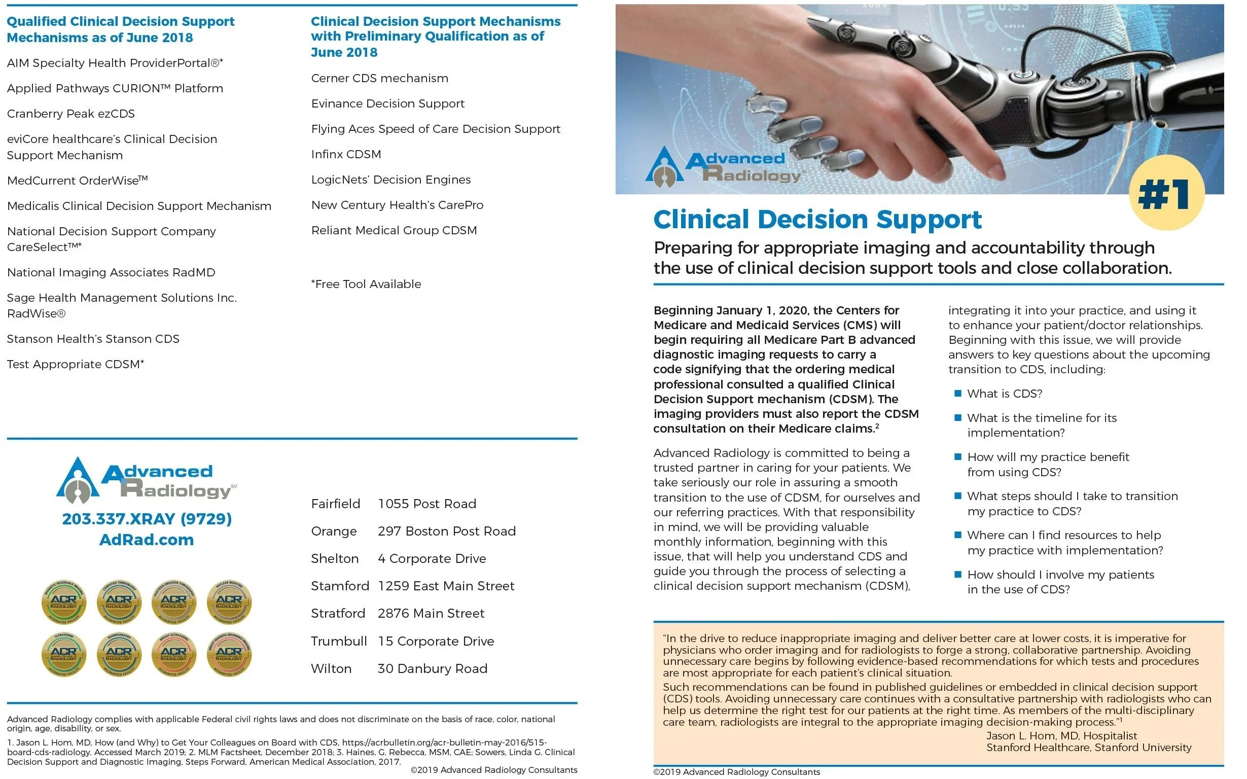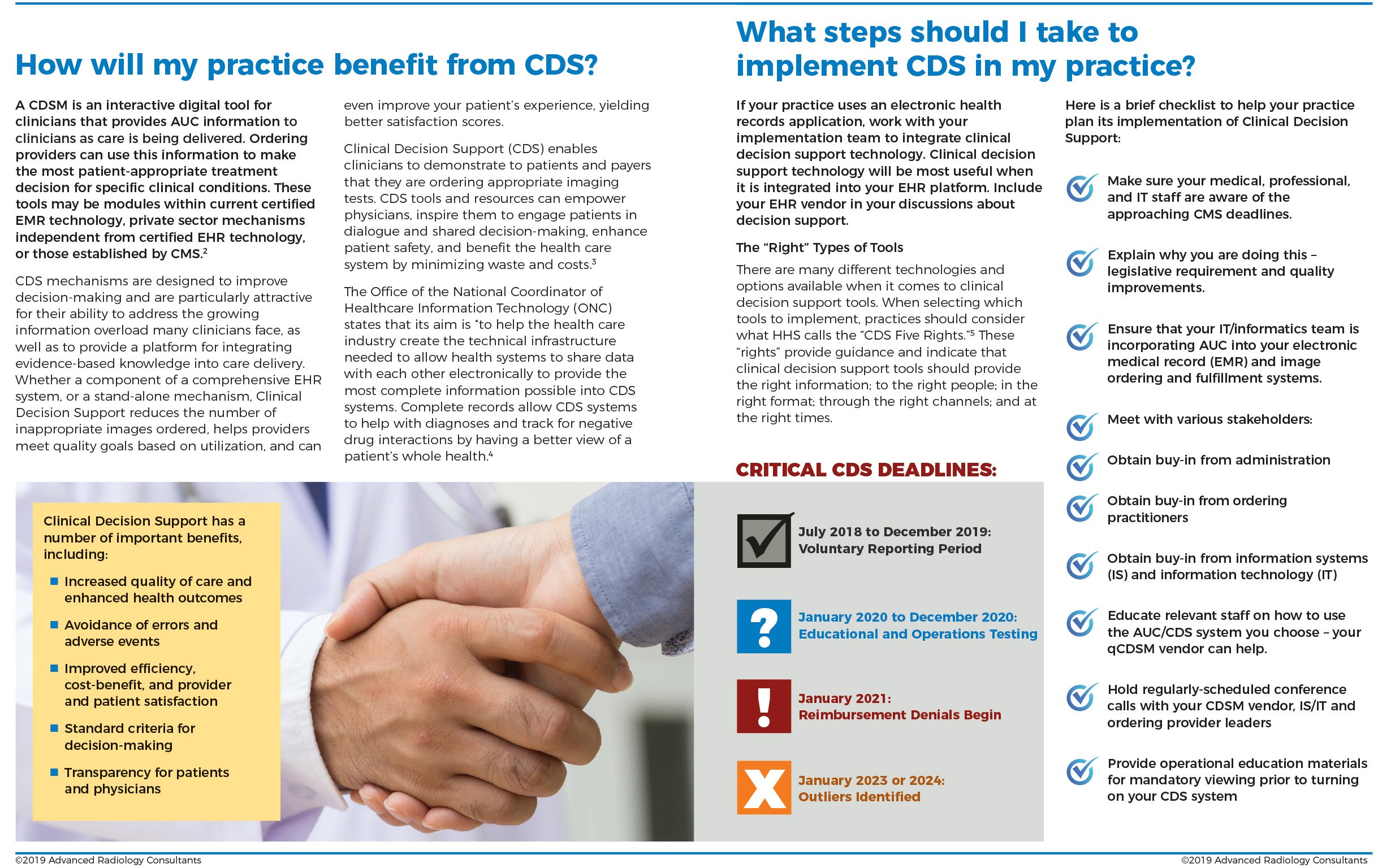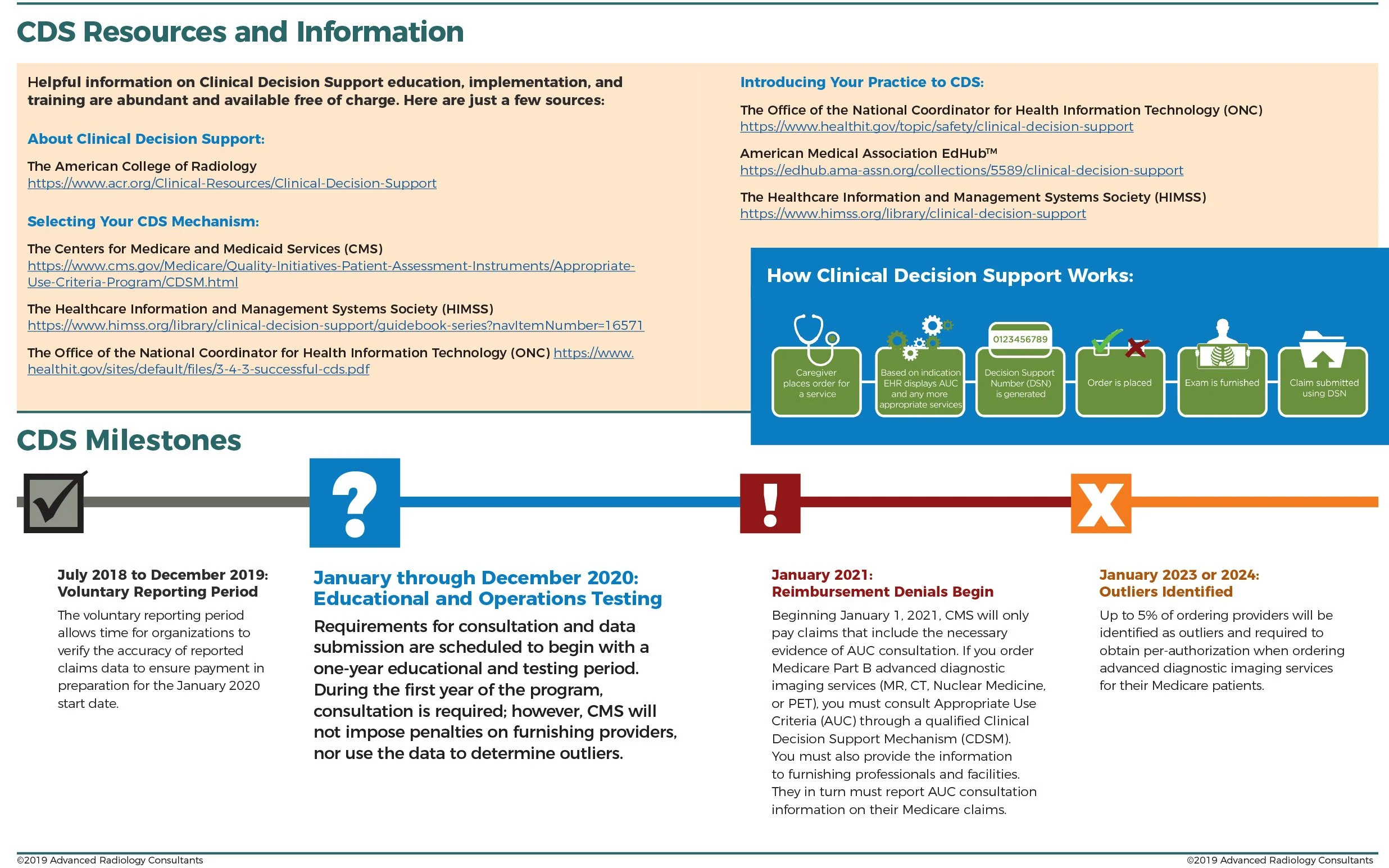 During the early 2010s, the Centers for Medicare and Medicaid Services (CMS) proposed a requirement that all Medicare Part B advanced diagnostic imaging requests carry a code signifying that the ordering medical professional consulted a qualified Clinical Decision Support (CDS) mechanism. This digital application was meant to prevent providers from either over-prescribing or prescribing unnecessary imaging. The requirement was to take effect in January 1, 2020.
