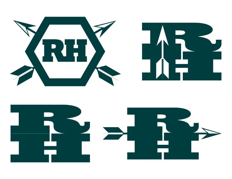 To satisfy both messaging (or lack of messaging) criteria, I chose an arrow theme to represent the targeted nature of the service, and avoided any indication of pest control but still kept this identity specific to Ryan by using his initials in combination with the arrows. Of the resulting several designs shown, he ultimately chose the stone arrowhead design.