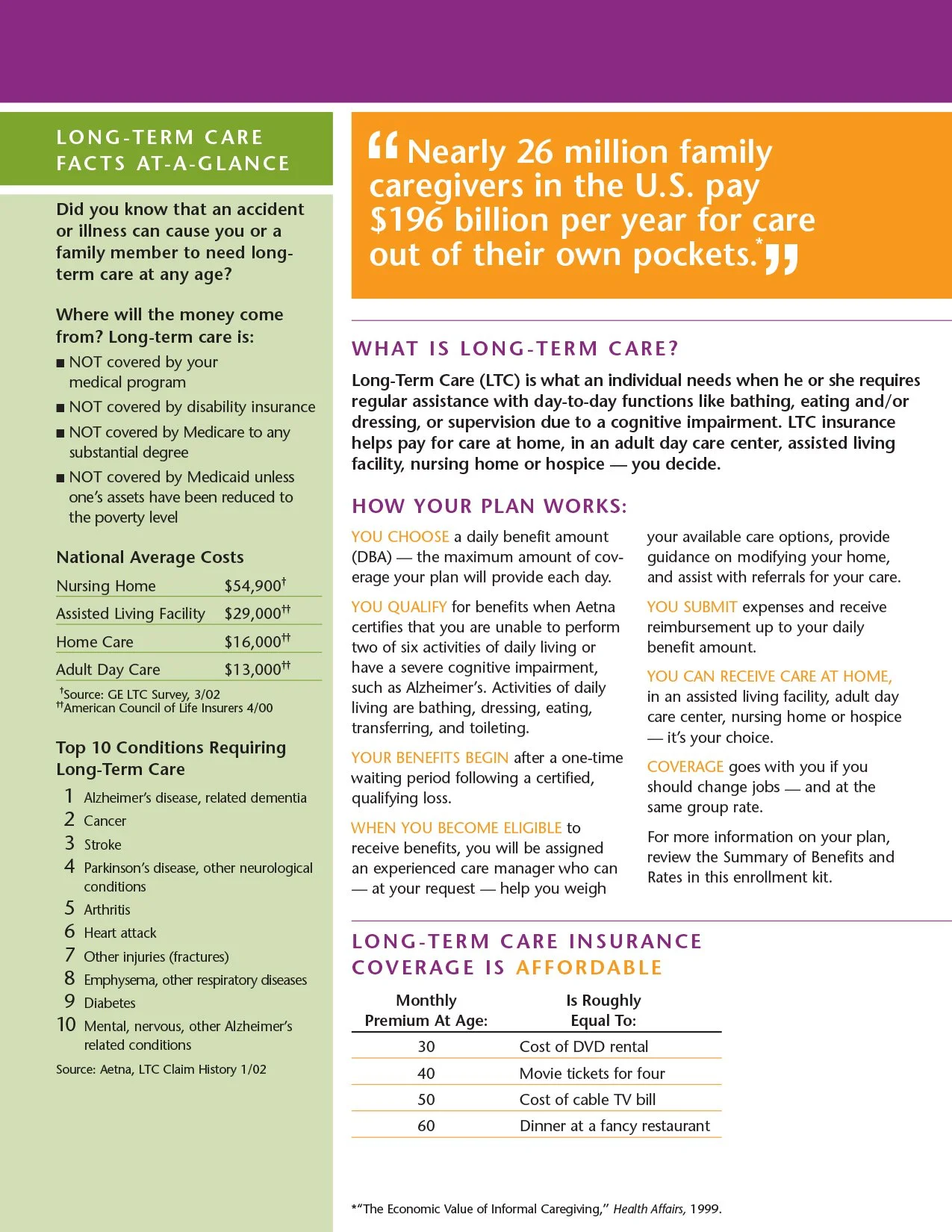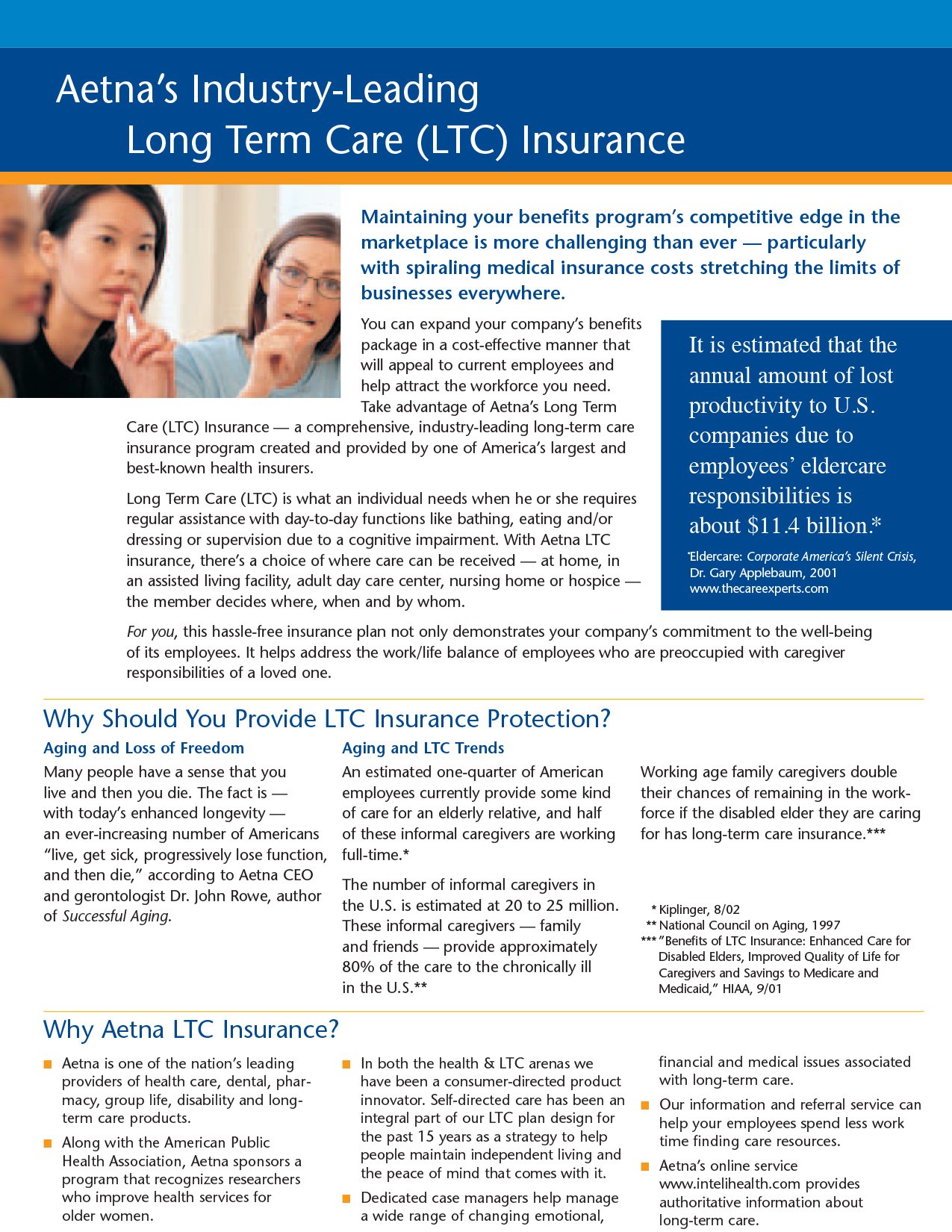 Aetna, one of the leading insurance companies in the US, required full suite of sales and enrollment materials for their line of Long-Term Care insurance products. This would involve not only developing the materials necessary to sell to sponsor companies and conduct enrollment meetings for employees, but would require defining the the sales and enrollment process as well.